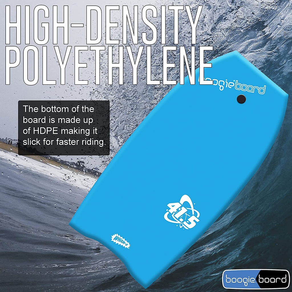 Take to the waters and ride the waves with the all-new, all sleek Wham-O Boogieboard! At a whopping 41.5 inches in length, the Wham-O Boogieboard is made to hold some larger riders. With power and durability to boot, this Boogieboard is equipped with a performance crosslink PE foam an ultra-smooth type of top skin on the board that gives added comfort and durability. The added Phuzion Core ultra-strong expanded polystyrene (EPS) foam is a premium super lightweight core. EPS cores are the most current, state-of-the-art fused cell material on the market giving testament to the strength of this Boogieboard's core. The bottom of the board is made using HDPE, which is a high-density slick smooth durable bottom-skin material that adds protection, speed, and performance. The Crescent tail on the Boogieboard is designed for all wave conditions, it gives the board excellent control and performance.